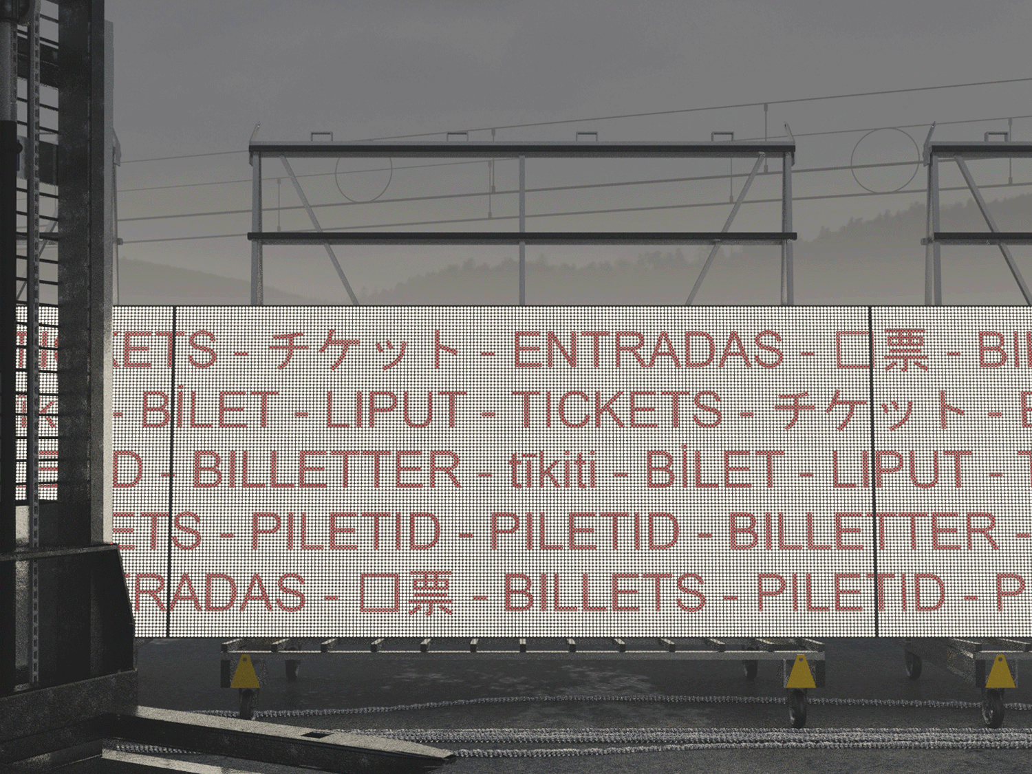 A space briefly held within the city, defined by what is borrowed, not made. Glass transport racks create its limits without fixing them in place. Nothing is altered, nothing is wasted—each element returns to its former use, leaving behind only the memory of a room that existed for a moment.