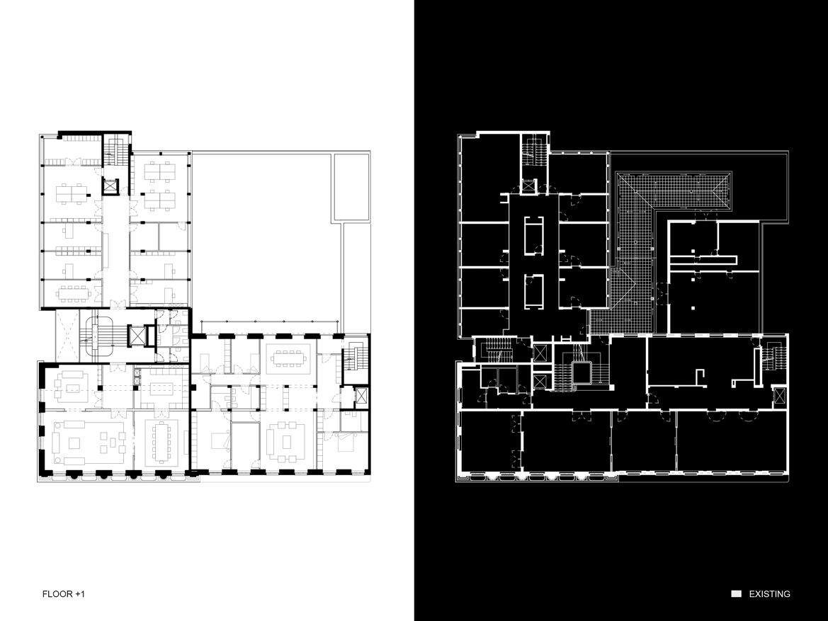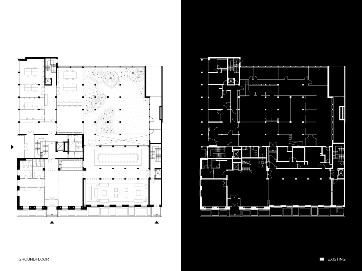 A precise intervention, inserted as a slender volume between the existing buildings, clarifies circulation, strengthens structure, and integrates new energy systems. The new core unites all users—ambassador, staff, guests—through a shared spatial experience, fostering openness within the embassy. The architecture respects its heterogeneous past: the Georgian, the modernist, the contemporary—each clearly defined yet connected. A garden is introduced, a quiet counterpart to the city, bringing permeability, biodiversity, and a moment of pause within the dense urban fabric.